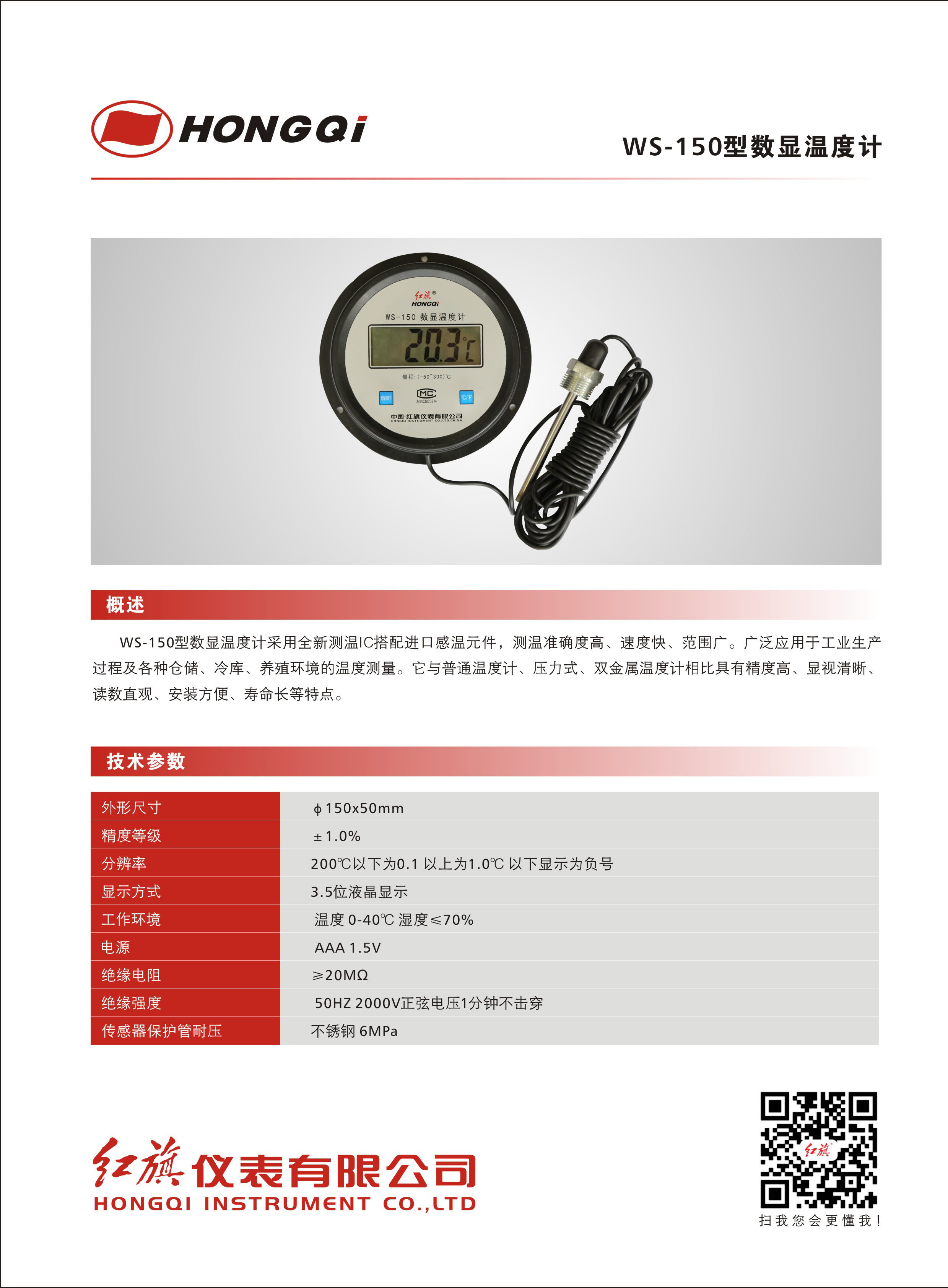 WS-150型數(shù)顯溫度計(jì)采用全新測量IC,搭配進(jìn)口感溫元件,測溫準(zhǔn)確度高,速度快,范圍廣。廣泛應(yīng)用于工業(yè)生產(chǎn)過程中,及各種倉儲,冷庫,養(yǎng)殖環(huán)境的溫度測量。