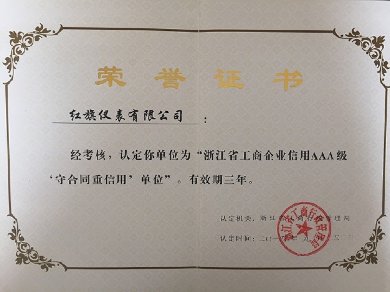 浙江省工商企業(yè)信用AAA級(jí)“守合同重信用”單位